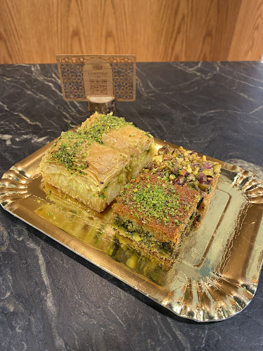 IF YOU DO NOT UNDERSTAND MIDDLE EASTERN CULTURE, STEER CLEAR OF THIS STORE/CAFE. WRONG TIME TO VISIT. On Sat. Aug. 30; 6 pm,my friend and I went to this cafe for coffee and desert after viewing website. Deserts are sold by the pound, $19.99. We did not want a pound of anything so the clerk produced a small cardboard tray, 4x6 and said she would make a small selection for us. After waiting nearly 30 minutes, we went back to the counter. Tiny deserts were finally delivered on a plate, no side plates, no napkins and no utensils. No one came to take a drink order so we went to the counter beside our table. 4-5 people working ignored us completely, including other staff going in and out of the counter space, NO EYE CONTACT. We finally leaned over and got the attention of a man. No drinks menu, it had to be ordered using their QR code!. After asking, we were given napkins and plastic utensils which were useless. Our lemonade drinks were finally delivered after asking about the order. Straws dropped on the table were not wrapped. By now, the noise level was so loud we could not converse. We gave up, leaving some deserts. My friend would not tell me what or how they charged; she could not identify the deserts. WHAT COULD HAVE BEEN A NICE VISIT WAS DISASTROUS. EXTREMELY DISORGANIZED. NO TOILET PAPER AND NO DISPENSER. Had to get off the toilet to get a paper towel which I put in...