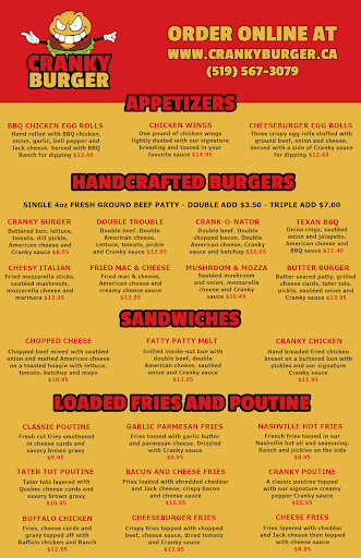 Read moreCranky Burger is fantastic! My family and I each ordered the Cranky Cheeseburger Combo with fries, and one with the macaroni salad, as well as some dill pickle spears.