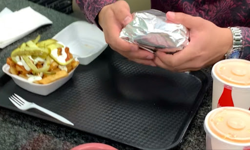 She then wrapped up our burgers, took off her gloves and began to package up our order. She walked over to the fryer, took out the fish and packaged it up as well. She took the fries out of the fryer, and dumped them into a section where they add the salt. I cannot remember if she shook salt from a spice jar, or used her hands. I do however remember her, scooping our fries into the take out container with a scoop. However, the amount of fries was too much for the small container they were being put in, so she proceeded to USE HER BARE HANDS, and shove our fries into the container. I was absolutely disgusted by that point.