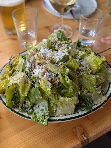 The salad arrives within 15 mins of ordering. (We’ve been enjoying our drinks so this timing is perfectly fine.) It’s a $23 caesar with large rock-hard croutons and a single anchovy on top. My ten-year-old loves croutons, so I give her one the size of an ice cube. It’s so hard she can’t bite into it. Her grandfather suggests breaking it I half with a knife. She tries, but she’s not strong enough. He tries, but he’s not strong enough either. They abandon it on the plate. We finish the salad and wait. The $28 pasta special takes another 30 mins to arrive. When it does, our server drops it off at the table and promptly leaves without asking how we are doing, offering pepper, or saying anything about the timing of the pizza. The pasta is cooked to a “cafeteria soft” consistency in a watery ragu with green peas that are oddly undercooked and crunchy in the middle. Time passes. We watch in dismay as the two-top (who ordered after us) gets a pizza. More time passes. My parents watch other people eating pizza and wonder aloud if everyone else called their orders in ahead of time. The $37 vodka pizza with half pepperoni arrives almost 90 minutes into the meal. At this point, we are expecting a masterpiece; the Sistine Chapel of pizzas - years in the making, but a work of genius wrought in tomato sauce and cheese. Instead, it looks and tastes like a normal wood oven pizza; the kind that takes 90 seconds to stretch, 90 seconds to dress, and 90 seconds to cook at 500 degrees. My kids and parents are so hungry they just panic-eat it so we can...