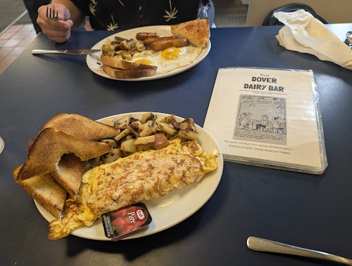 Read moreThis place is for you if you love seeing food come out to tables seated after you, want coffee, they got it but it’ll be a 15 minute wait and they might forget to bring you creamers. Love a waitress who forgets to put in your order, Dover dairy bar is your home! Oh, I almost forgot, you need great memory to eat here because if you add a side of something to your plate, you might not notice it not there.. overall experience was great, our table laughed and enjoyed the 5 waitresses serving 5 tables and couldn’t remember a cup of water!! If you are a very patient person, Dairy bar is for you!! Can’t compare this to anywhere else as they have no competition, and that’s all fine and dandy! Staff don’t seem to care about how your food is or if you are missing anything, they paid by the hour :) I would recommend ordering eggs and home fries if you are hungry for eggs and bacon, or vise versa. Come down to dairy bar if you like surprises, by the time you get your food you will be surprised! Last thing to add, they should endorse this slogan “come sit down for breakfast, and enjoy your lunch” as it fits perfect, and if you don’t understand, I’ll explain, you sit down at 11 and get your food at 12, it’s truly awesome!! I will 10/10 be back to enjoy some laughs and...