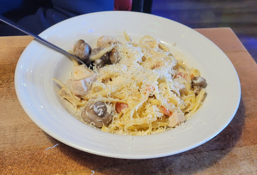 We ordered pasta and meatballs as well as a pizza. Pasta was okay, nothing special. The pizza on the other hand was terrible. More than half of the pizza was just dough. Barely any toppings and could've been cooked a bit longer. We showed the bartender and he apologized and said he will get the real manager to compensate the poor food. Half of our meal was comp'ed which was nice.