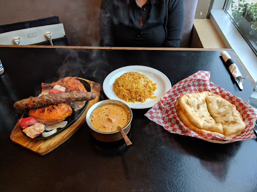 Read moreService is friendly and efficient but on the slower side. Avoid the bathrooms, the smell is enough to spoil your appetite, one can be hopefull the same standard of cleanziness is not followed to the kitchen. We quickly learned most everything on the Indian menu is medium to hot spicy, not good since going to the bathroom was out of question lol. The samosas were great medium spicey, the cheese pies were enjoyed by kiddos, literally only thing not spicey. We ordered Beriani chicken which was very good, spicy but very flavorful. The chicken Tikka came on a hot sizzling plate, nice touch but unfortunately overcooked and too charred. We also orderd the Karahi with lamb, the sauce was very tasty and hot spicey but unfortunately the lamb was tough as leather and unedible. Naan was good, the garlic Naan was disappointing, looks like just garlic power sprinkled on Naan. We then asked for something not spicy for kids to which we were then told we should have ordered from Mediterranean section if we didn't want spicy, headup would have been nice when we first ordered. The chicken and fries were well enjoyed by the kiddos. We also ordered desserts which I have to say was highlight of an overwhelming dinner, I would totally come back here just for the...