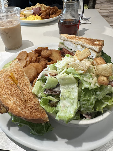 The menu was a bit overwhelming, but that's typical with brunch places. The majority of our group ordered some sort of eggs combo, while I tried the club sandwich (as I didn't check the time and thought it was lunch). The portions are sizable and great value for the price. Most of the combos come with sides, and I'd definitely recommend the potatoes, which are perfectly fried and crispy. My club sandwich was tasty and a great portion, but I found the chicken to be a big tough. What I didn't enjoy was the Caesar salad - it was extremely saucy and the dressing was very strong. I'm a big fan of sour things but this was a bit too much for me, which was disappointing because the portion was great and there was a lot of bacon as well. The rest of the table enjoyed their meal.