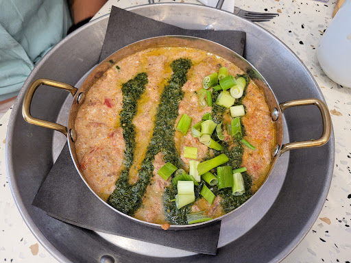 The food has been absolutely delicious. So far, we’ve tried the menemen, pistachio pancakes, chicken Benedict, fahsa, mankousheh, chicken and waffles, and steak omelet. Everything was full of flavor and cooked perfectly, except for the waffles—they crumbled quite a bit and seemed to be made from the same batter as the pancakes. I’d suggest tweaking the waffle recipe to improve the texture. Otherwise, everything was fantastic.