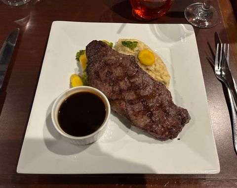 We had gone for the Saturday Prime Rib special and I was non visibly disappointed that they were all out of the Prime Rib. However without hesitation, they offered the lamb shank as a surf n turf option. This came with shrimp, scallops and a crab cake. Needless to say this was what I ordered and it did not disappoint. The variety was superb, cooked perfectly and delicious. My partner ordered the Striploin as they were out of the Tenderloin and he said it was the best Striploin he’d ever had.