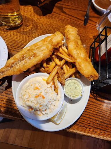 Our Fat Jimmy's experience was a well rounded full experience. We we're stuff. We were starving however there was so much food for your buck we got two full dinners from them.(see photos). Doti our Hostess with the mostess who kept it coming on my Besties Birthday Day was very professional and Doti had a great sense of humor that kept us in stitches the whole meal..approximately 90 mins. If your looking for a new watering hold in Blenheim..Fat Jimmy's is the place you wanna be so load up that family and come to...Fat Jimmys Bar and culinary cuisine extraodinaire..merci😉. We started off with a meaty ceasar salad..CHEF DOESN'T SKIMP..K!..and then moved on the the main course. This consisted of two peice fish and chips with slaw and TAR TAR sauce. I had a full rack of ribs..GOOD GOLLY MISS MOLLY! IT WAS HUUUGE! The kind Fred Flintstone had on the side of his footster that flipped..OH YAAA! The sauce was amazing. I also had whipped taters with home made gravy. When I finished eating the gravy I turned to my wife and said .'I NEEDED THREE MORE SECOND!' This place is clean as well. The hostesses even on a busy Thursday...Friday or Saturday are on the ball. Don't take my word. Make your great weekend memories this summer at Fat Jimmy's. You won't regret your choice. Doti even had some strawberry cheese cake for us as a Birthday Day dessert. God bless you Doti. Luv Malcom💪😎🧡Stay...