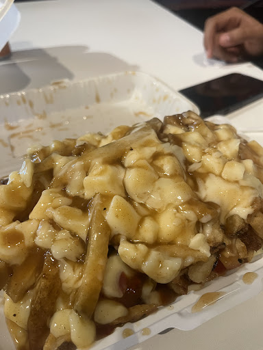 Read moreDingy and dark, smells like the blue stuff you put in toilets sitting at the tables behind the panel wall but too smokey sitting near the kitchen. The booth is rock hard with no cushion and all the leather chairs are flaking away. Apparently they changed the sizes recently the sizes are absolutely ridiculous. A medium-sized poutine is more like a snack. I've worked in multiple restaurants and the size of their medium poutine is half the size of a typical small poutine. The large is the size of a small. I'm an absolute poutine fanatic and was born in Canada this is not good poutine. Expensive as well, there are so many better places to get a poutine, some how worse than a Harvey's poutine. They don't have have any plates or cutlery everything is served in take out containers even if you eat there. They fill the container way too much to give an illusion that you've gotten a good deal but in reality all you're food just falls out of the take out container and everything becomes instantly soggy in a bad way. The fries are very average. Mushrooms are canned and pretty meh. Gravy is good. Was so excited to try because all the hype, disappointing. Go to Simon's down the road for a better deal and...