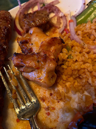 For the kebab plates, the meat was ok, 6/10 however in multiple of our skewers we found ourselves biting into something rock solid, I'm not sure if it was a piece of bone or what, but it was odd that it happened to multiple of us across multiple plates. It also felt like they really skimped on the portion size. The 2 skewers were fine, but they only really include a tiny amount of rice/burghul with each plate (usually because rice is cheap restaurants put a lot of rice to make the plate seem bigger than it really is but they did the opposite), and the random included slice of tomato wasn't grilled properly (had tiny char mark from when it was put on the grill but it was still fridge temp on the). Really for a plate at this price, there should either be significantly more rice/burghul, or a combination of rice & salad.
