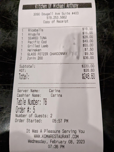 Read moreThis isn't easy to do because we REALLY wanted to love this experience but it wasn't perfect and it really should have been. Dinner service, 6pm Saturday 5th February 2022. Pre-drink cocktails: G&T was okay BUT Old Fashioned was not at all good. Watery, simple syrup was missing, no zest and no orange peel to flavour. Honestly one of the worst I've tasted. Appetizer: An hour to get an app out is pushing what I think is acceptable. Bruschetta was again ok (but far too much) but Octopus was drowning in sauce and was overpowered by too much seasoning which masked any other flavour. Protein: Cod and Lamb ordered. Both courses again drowned in sauce and flavours of both overpowered by whatever was in the sauce. When you look at the dish and it's ALL sauce it's quite off-putting. I would have liked to have tasted the orzo and not had orzo soup with the lamb. No dessert menu, no coffee's or espresso offered. The service was okay BUT again, for the money should have been more attentive and followed correct service protocols for dinning. Maybe I'm now nit-picking but at nearly $300 (with wine and tip) for two people it should be a perfect experience to want me to come back for...
