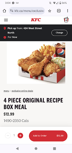 Where do I start? Put it this way I will be surprised if this KFC on West Street doesnât go out of business shortly. I pull up to the drive thru and ask for the two piece combo and ask for two chicken breasts instead of a breast and a leg. The employee tells me it will cost me extra. Iâm thinking okay thatâs fine because the legs they sell you are so small. Wow, was I fooled. I also asked to upsize my fries to a medium instead of a small. I get my food handed to me and the employee says to me she is so confused. Not sure why, it was a simple order, hate to see how she would deal with a large order. I check my order before leaving and what I see are two very small chicken breasts and a small bag of fries. I go back into the restaurant and say to the girl at the cash âthis is a medium orderâ she replies with that is a âmega fryâ. As Iâm leaving I said I would hate to see a small fry. The order came to $20 and change. I also had a terrible experience with this KFC approx one year ago with them forgetting certain parts of our order. Thought I would give them one more chance. They are very sneaky as well, the employee said to me last year she would give me a free piece of chicken if she could put a review on my phone. She took my phone and gave themselves a five star rating. This location isnât even worth a one star but I had to give them at least a one star in order to leave a comment. I donât like leaving negative comments but this is totally deserved and people should never eat at this KFC on West Street in Orillia. I will never be back. Also going to post this on Facebook. Word of mouth is your worst advertising folks. This is what it looks like on the plate. My mother in law tells me she was at this location a month ago and ordered the three piece with fries, got home and the chicken wasnât cooked so she threw it in the garbage and opened a can of soup. Not sure who the manager/owner is but you need to pull up your socks and be ashamed of yourselves.