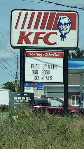 Read moretheir sign advertises "FUEL UP WITH OUR BOGO BOX MEALS" (see photo), but if you go in the store you're rather rudely informed "that's ONLY thru the App". then you can dl the app, create account, only to find out that the app only work with SPECIFIC (tracking) browsers that you'll have to dl and register to get KFC app to work. so we started over from scratch on wife's phone; dl App & Browser and submit order. after all that, their system requires credit card validation against a phone in toronto. so i have to call a co-worker to answer my phone to get code. THEN, after 47 minutes of processing, re-processing, delays & waiting, i get two 3 piece tenders meals that had 'tenders' that were actually more the size of NUGGETS (see photo). AND, there are NUMEROUS, VERY LARGE (18" - 24" across & 8" - 10" deep) POT HOLES in their parking lot that could VERY EASILY damage your vehicle that have been...