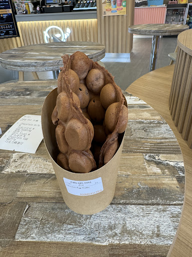 I ordered three things. I’ll go over the Chocolate Egg Waffle first. This thing was huge! I did not expect it to be the size it was. Basically, chocolate was mixed into the batter before making the waffle. It had a lovely waffle pattern, different from the North American style. It had buttons instead of a grid of squares. This costed $5.5. I’ll rate it at 8.7/10.