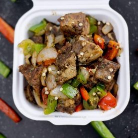The stew beef was cooked properly but there was a burnt taste probably due to slight over-cooking of the spices. The rice was good. I would have liked more of the sauce with it. That probably would have fixed the spice issue of the burnt taste.