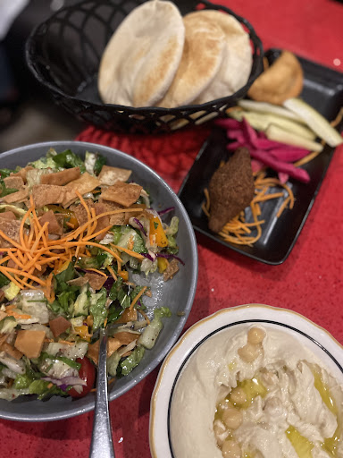 The hummus and Fattoush were portioned well and seasoned to perfection. The wine and drink list were well thought out. Lots of food options. Only one main vegetarian dish. Lamb Shank was very tasteful however extremely small portion. The entire shank was bone and had about 3 bites of meat. Otherwise tasteful! Biryani side rice was beautifully seasoned and delicious. The complimentary bread looks homemade and tastes great. Warm circle loaves made to perfection.