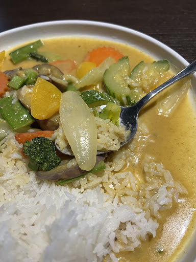 For a Thai restaurant the interesting thing is that the menu selection is very limited. Not many choices - just several flavors of curry, a couple of stir frys, Phat Thais, and appetizers. But the dishes they do make are quire lovely, mostly owing to the great sauce and the crispy vegetables. The meat is nothing to write home about. I beleive the chicken breast might be frozen? Hard to say, but it's overcooked. What's anything but overcooked however are the vegetables, which are always cooked perfectly. The sauces are delicious.