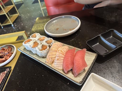 Read moreThey definitely try to market this as a “higher quality” establishment, which can be said, but for someone like myself and my partner who were looking for a casual spot to try as lovers of Japanese food, this ain’t it. Prices are outrageous, bill for 2 came to over $100. Menu selection is incredibly limited, very basic selection of vegetables/meats with only 2 chicken options to grill (thigh and wing), so if you don’t eat beef like myself, you’re kinda outta luck. Sushi options were very lacking as well, with maybe 15 rolls offered for dinner AYCE. Cooking your own food is a cool experience but we found the burner to be severely underpowered, meaning we were sitting there watching it cook for so long, we eventually weren’t even that hungry anymore. Food quality however was quite nice, definitely a step up beyond a budget spot, but for $100 dinner it should be. Sashimi, and the rolls/sushi pieces were pretty standard in what to expect. Only complaint on food quality/preparation there was the sushi pieces are massive, like MASSIVE can’t even fit a tuna nigiri in your mouth sized (might be a good thing depending on the person) so be careful when ordering, because their sushi pieces are at least 2x the size of places like heart or 168, so you will fill up fast on them.