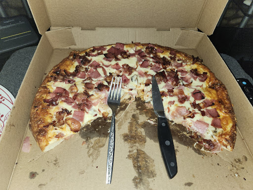 Ā Ā Ā Read moreLast evening we ordered supper, one pizza was to have hot sauce, it didnāt, one had a hair in it, the Caesar salad had no dressing and they forgot the kids pizza. The guy had to go back for our sauces and the kids pizza plus his debit machine was broken.The delivery car stunk of cigarette smoke and our food was not in a delivery bag. The pizza was terrible. I did call to complain and the best they did was 25% off and said the next time I order they will throw in a 2L. There will not be a next time. Nothing was edible $95 worth of food...