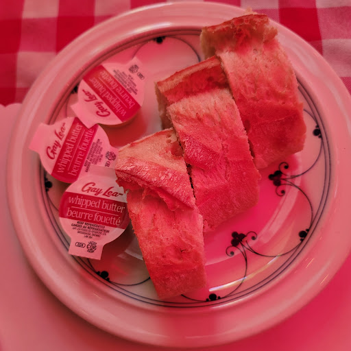 We love that the presentation made it during the car ride back to my parent’s. See that huge dollop of whipped cream on the side of the dessert? Yes, only the FRESHEST CREAM WHIPPED a la minute! Where are you going to get a delicious complimentary wood-fired oven focaccia included with your dinner? Paulos Dinkels...that’s where!