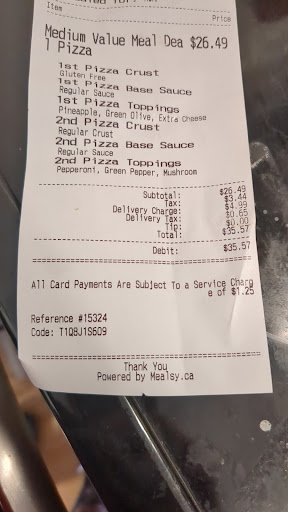 Read moreThis used to be the best place for pizza, and now it's just garbage. We ordered pizza last night and it was burned and the crust was awful. The gluten free crust in the second pizza actually tasted better, which was scary. I didn't ask for thin crust but it was thin and scrappy. Really disappointed in the price increases too. And the sneaky extra $1.25 to pay with a card that you don't know about until the receipt prints is SHADY. Time for a new pizza joint. With tip this bill was...