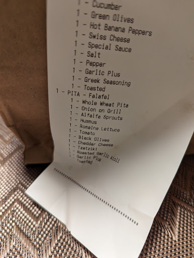 Read moreJust went through the drive thru. Pulled up to the first speaker and placed my order of a club pita, a bag of chips and a pop. The speaker was so low I could barely hear it. Went onto the second speaker to place what I wanted on the pita. Went to the window and was handed the debit machine as I was paying with debit. Then the girl hands me my order. A pita. No chips no pop. When I asked her where the rest of my order was she rudely replied I asked you if that was all! I told her yes that was ALL I wanted on my pita. Again she argued that I had only ordered the pita and was quite upset I questioned her on the rest of my order. If she was taking my order, why did I place the first one at the first speaker??? So I drove next door to Panera to buy my pop and chips. I will NEVER return to that Pita Pit. Very disappointing service and incredibly...