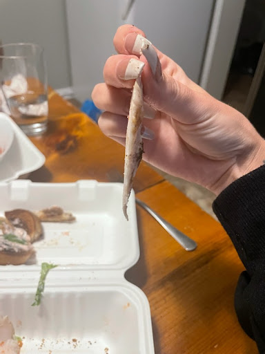 The shrimp salad was the same and she could only muster to eat half.