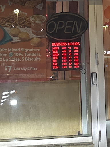 I usually go to location out of convenience. Usually an ok experience. Last night however horrible experience. The cashier last night was rude. I asked for 2 3 piece chicken tender meals. I noticed online prior an option to get without drink each to be 9.99. She asked me mild or spicy. I had to think because not sure what my bf wanted and she got impatient with me and said two mild and apologized and explained what i was deciding on. Then she ask sides and then told me the price. I noticed the drinks. I asked if there is a option for without drinks. She said yes without me paying attention to the detail again she changed the chicken from tenders to pieces not what i wanted. I didn't realize the change until i got home. When i went ask her about dip she asked for the chicken i said yes she said no dip. Overall not impressed with experience and not sure if i go again. Also the music was loud and not very good quality it was sketching out the songs like some was fast forward 2 secs and playing it again. Im sure dua lipa and Elton john wouldn't be impressed by how their songs together sounded last...