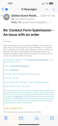 Read moreVisited this location a few days ago. Ordered a quesadilla and was told we were not allowed to have any type of sauce (queso, salsa or ranch) due to it possibly being messy and spilling out onto the grill. This is odd to me because every other Qdoba I have visited across the country, even other London locations, has allowed this. This caused my quesadilla to be super dry and almost half of the ingredients inside fell out. Cheese could’ve maybe saved it and held it together but there wasn’t even a lot of that either. Also, toasting/grilling a burrito is definitely a standard at other locations, the burrito we received was not, so the burrito was cold in some parts and warm where the chicken was.