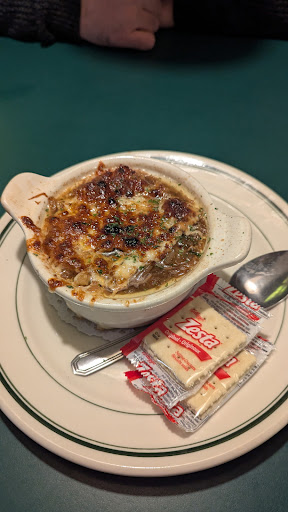 My wife got the French onion soup which we shared. We both really liked it. No complaints there.
