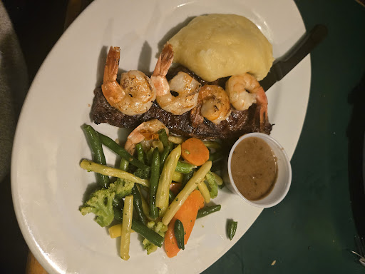 Read moreFirst time visit to this new restaurant. We arrived at 630pm. Let's start with the good points. Food was delicious. Large selection from steak, burgers, pasta, schnitzel, salads and slouvaki. Portion sizes are big and the prices are very reasonable. The atmosphere was cozy with nice booths and stained glass. Our waitress Dee was amazing! She gave great suggestions and came back often to check on us. Now for the not so great points. Although we got our appetizers within a half an hour of arriving our dinners took another hour. The restaurant was almost full when we got there. I would say 16 to 18 tables....and 2 waitresses that I could see. Not easy to get everyone's orders into the kitchen I'm sure. There was an older woman there with short hair. I'm not sure what she does there but I watched as she played on her phone most of the evening. The young hostess needs more training. She needs to learn to help by grabbing empty plates on her way back from bringing food to customers. I had to ask her to take away the empty plates. They also need to hire a real bartender. Worst gin and tonic ever, same with my husbands rye and ginger. So the next round we ordered the shot with our mix on the side....much better. Overall the food is worth the wait and the waitresses work hard and are very friendly. We will definitely be back but get rid of the chick playing on her phone. Update: We've been back many times since our initial visit and the food is still great! Pricing has stayed the same and the staff can now make a proper drink lol. I love the Chicken Souvlaki dinner here....$18.99!!! Keep meaning to try the all day breakfast...next...