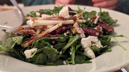 My husband and I are passing through town and needed a place to eat dinner. I glanced through yelp and decided on this place. We managed to get a table outside. The waiter was very attentive and knew the menu and drink list. We both ordered beer, the wheat beer was good. My husband had a darker red beer and liked it. This restaurant has amazing food and even better service! My review is splitting hairs because it was that good.