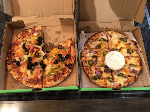 Canât really put N/A for service and atmosphere but I just ordered online. Was fairly quickly made though. First time ordering here - had the #14 Veggie Fans personal size pizza (left in pic) and the veggie ranch sticks (right in pic).