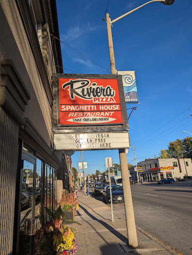 Riviera Pizza is very elegant inside. The store itself has a great atmosphere. The store is modern and the inside is family friendly. It seems like a popular spot. The pizza was made on time and was a little overcooked, which isn't always a bad thing.