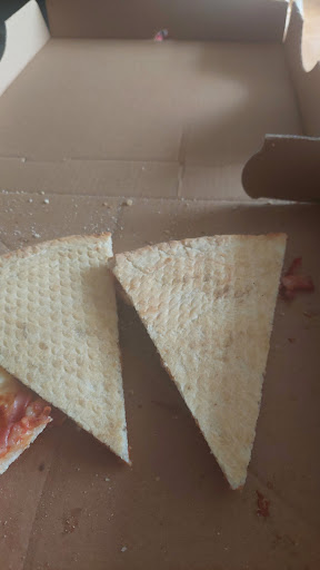 We opened the pizza and it looked like it had been steamrolled. It was paper thin and there were even holes in it because of how thin it was. You would have to stack 3 pieces of top of each other to make 1 normal sized piece of pizza. And it was super cold. Taste was not that great either. Tasted like they used store bought sauce, and the amount of cheese was abysmal there were large chunks of pizza that were just dough and sauce.