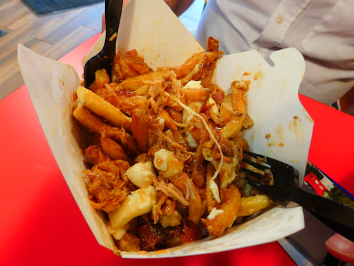 Read moreI wish I could hit zero stars. I only went in because I had a gift card, I'm never in the area, but finally was. The gift card didn't work, but I paid cash anyways, I'm hungry. The counter girl seemed to be the only one there, she was very apologetic the gift card didn't work. I waited extra time because she had to first take the order, then the guy behind me had to order, then she can start on both poutines. It'd be nice to have a cook in back who starts it while she attends to the line, it was like 12:30 when people eat lunch usually. While I waited for my order, I noticed the smell in that place is unbearable. It was hard to even describe, it smelled like vomit and mold or something. I ate outside it was so disgusting. I got a poutine that said it had "premium ground beef" on it. What I got was these odd, crunchy, hard pieces of meat. It looked like it was dehydrated beef someone never added water to. That or someone kind of innovative new "salty beef crouton". The portions for the mushrooms, onions, and cheese were a joke, I got about ten miniscule mushroom bits that look like they were soaked in black ink, and a sprinkle of onion and curds. I tipped the girl over 20% and she gave me tiny teaspoons of ingredients anyway. She also elected to give me my drink first, then cook the food. This makes the drink warm up while I wait. The gravy tasted strange and too salty. They failed in EVERY WAY. I feel ripped off. Eat...