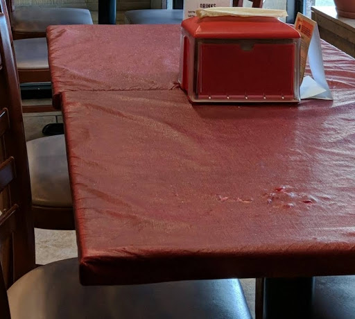 I will give it credit for the decor it was cozy it was sort of retro. However having to wait there I'm sitting at the table and the tablecloth is disgusting. They are just merely covered with Dollarama cheap $1 or $2 tablecloths they are sticky, they are old, they look like they were put on for the color of Christmas but you could tell that they were disgusting and you can tell that they cut them down to size for the size of table. Well you surely can't be that short of funds not to be able to replace them once a month or sooner if need be. I wouldn't go there to sit down and eat, here is a free interior design snippet my suggestion if you're going to use that type of tablecloth go to Home Depot and get that strong plastic material that you could put on over the top of the table cloth you have now then flip the table over, get your staple gun out and staple it to the bottom and it will last you a lot longer and if you decide you want to change out the color you can always just pry out the Staples with a flathead screwdriver replace the tablecloth and put the plastic back. Then you have the tablecloth again for that time of year. Just a thought out to the owner of the place. If you go back and see other people's reviews they have had these tablecloths well over 2yrs and I noticed one from the same table 8 months with the exact tips..... PLEASE change them out it isn't that hard.
