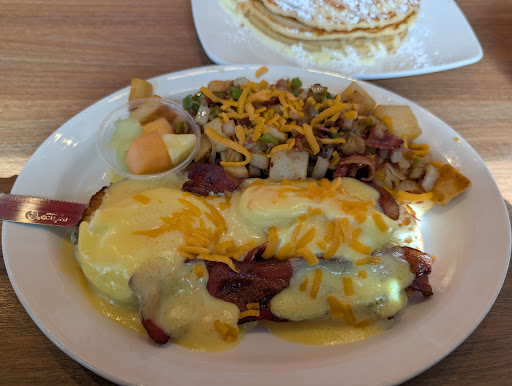 Read moreStacked quickly became one of our favourite new breakfast places in town! Their service is always top-notch, and we love the customization options!!! We usually get the pancake stack meal and upgrade our pancakes to one of the MANY delicious specialty options (I was a diehard Cinnabon girl until they switched up the menu and brought out the Biscoff ones), but this time I branched out to try their classic eggs Benedict (which were perfectly runny, and the hollandaise was luscious and delicious) and my partner tried their steak and eggs for the first time (which he said was well-seasoned and perfectly cooked to order!!)! We did share a side of their special apple pie (cheesecake?) pancakes with the Biscoff crumble and oh my gosh were they ever good..... I can't say enough good things about this place though, so I definitely recommend you try it!! On a weekend you might have to put your name on the list and wait a few minutes for a text from the comfort of your vehicle, but trust me it's well worth it! You are guaranteed to get friendly smiles and great service both from the owner and our regular waitress (I'm terrible with names, but you'll know who they are if you go even twice!!), and guaranteed to get a great and filling meal - especially if you opt for some fancy pancakes and be sure to holly up your home fries! I've turned many friends and family on to this place already, so I know you won't be disappointed if you give them a shot!! So go and enjoy!!! Update: Have been back more than a few times of course! Today I came with a friend for his birthday, and he LOVED the food! Our server this time was Bianca, who was a lot of fun and took great care of us!!...