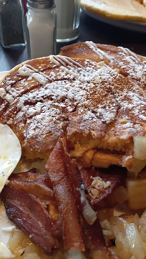 Read moreThe only decent food is the pancakes. The rest of the food is very mediocre and pricey compared to every other breakfast place in the city. The table was a mess with sticky syrup everywhere, even after waiting 30 minutes for a table. We had a table of 6 and we all had lots of food. One person at our table is a slower eater, and the owner came over and started clearing our table and then told us that he's not rushing us, but there's a party waiting for our table. Our slower eater was in the bathroom and still had about half his food on his plate that he was trying to eat, but we were being rushed out. Also, one of the servers had very bad body odor and every time they walked by, it smelled so bad it completely turned us off eating. We mentioned all this to the owner and we were basically brushed off and given tons of excuses. I get that it's busy, but it takes less than a minute to clean the table properly. When people are waiting 30 minutes for a table, that extra minute means nothing. The bills were also mixed up when it came time to pay, but that was sorted out after the fact. We probably won't eat in again, but might order pancakes to go and pick them up. We will get the rest of our meal someplace else that treats customers a bit better. Not many options for dairy...