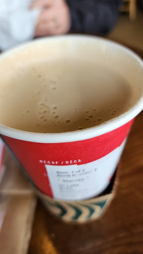 Read moreThis is our go to spot with my mom to have our coffee date. She has a special order due to dietary restrictions and personal preference. I asked for a half a shot of decaf for a medium coffee (which usually has two shots). Jaden or Jada (not sure her exact spelling as she had a black apron and seemed like it was the manager but no tag) was SO EXTREMELY rude about our Oder because this wasn’t a “standard” request and there was “no way to input the request”. My mom has had the same Starbucks order for years now and usually no problem in ordering it, other than specifying that she would only like the half shot and that if we need to be charged as normal, there is no problem with that. She made us feel like we were asking something completely crazy and mentioned that “other places were doing it for us” as if we were again asking for a crazy request. Not only did it make me feel uncomfortable in asking but it made my mom feel like if she was causing trouble for her dietary needs of low caffeine intake past a certain hour of the day. Her attitude was not appreciated and we will NEVER want to deal with her again. Not only is the coffee as everyone knows expensive, since you pay for “the experience” but apparently asking someone to simply do a custom order is not a possibility without it being a big deal. So...