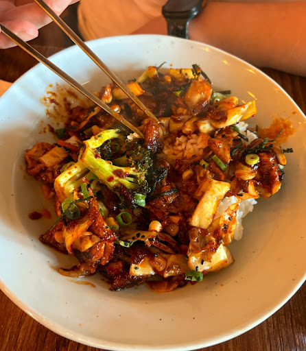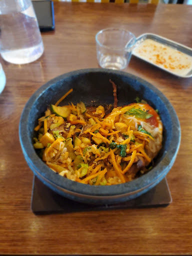 I've had Korean before, and often found that the meals come with too much rice for my taste. The Dolsot Bibimbap (depicted) did not suffer from this pitfall. It is a well balanced combination of rice, protein (in my case tofu, though chicken & beef are also available; and an egg), as well as vegetables (eggplant, lettuce, carrot, etc...). The house made hot sauce, which tasted like a mix of Sriracha and Soy Sauce to me, was a great addition to the bowl.