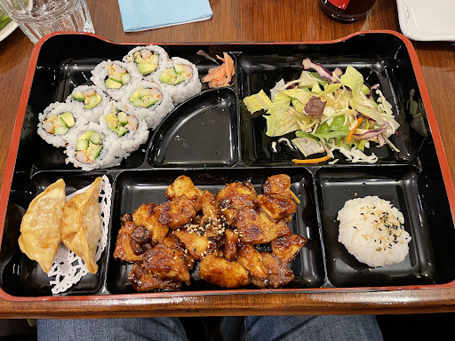 The restaurant hop in the pursuit of decent sushi took my friend and I to Sushi Ya. Every time I've walked down Clarence, I've wanted to eat here, so the opportunity arose after starting the evening with bad sushi elsewhere. What a charming place. Its cozy and lined with a mirror wall to make it brighter inside. After checking the menu, our server started with a plate of edaname, followed by a not too salty miso soup that contained small cubes of tofu and finely sliced green onions. These dishes by the way weren't something we had ordered, they were included as part of the meal! Our medium sushi/sashimi pate followed after not too long of a wait. A rose was added to the plate in a nest of radish and carrot...beautiful presentation! The cuts of fish were fresh and of a decent sized portion and all the sushi was beautifully uniform. Wasabi was paired with a sweet rather than salty soy sauce which was a delightful and unexpected taste surprise which I loved. My friend had a hot pot of tea and I had a glass of water which was refilled when needed...our server was attentive, yet unobtrusive. Another family came in and sat behind us. They ordered different types of Bento boxes, so the next time we go, I'm going to give that a try. The chef and the server are a couple, so this is a family-owned and operated business. If you are seeking fresh, well-prepared Japanese food in a clean and quiet atmosphere, Sushi Ya won't disappoint! Sushi Yeah! and Sushi Yaaayyy! 😋❤🍣 I WILL be back many times and make sure to sample their very extensive menu. Thank-you for making my friend's last good meal in London (he's moving) enjoyable...