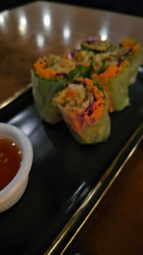 Food was excellent, sercice was good. Modern aesthetic. Portions were adequate, in some cases generous. The coconut soup was a mix of creamy coconut and warm spice, capsaicin heat with flavourful smokiness. Hint of cilantro, not tio much. Well balanced and served steamy hot. The satay sauce srrved with the crispy xhicken skewers was delightful, dense and delicious and you can never get enough of it. 😊 Tidy amd friendly woth an air of finer dining. I didnt care for the metal chopsticks though the aesthetic is very fine they were awkward to use. Blame my western raised fingers I suppose, but I didn't care for them. It was an afternoon visit for a late lunch and it was nit busy at all. Parking downtown was nightmarish, finding the place awkward ,we walked right past it looking for it specifically the three of us. I don't blame the restaurant for this,just an observation. Once inside it's a nice experience and I'd eat there again. Probably one of the best Thai food experiences in London, but not THE best. The aesthetic is date night, business lunch. Staff attitude at first impressions (maitreD) was less comfortable friendly and more of that cold old formality of fine dining mindset, that they are doing you a favour by letting you in the door... Young lady server was a friendlier interactive experience and saved the dining experience for us on a whole,.so did the kitchen staff. The food was quite good. The plates arrived HOT and fresh and pleasantly arranged. Formally trained kitchen staff was the immediate impression. Our server knew the menu items intimately and was patient with our fumbling over language barriers. All in all a good eating experience. Would I line up to eat here, perhaps. Would I call ahead for reservations for a larger group, yes. LGBTQ+ friendly, yes that was our perception and experience. Confusingly the washroom is behind the bar by the kitchen door but on the main level, so that's a bonus for accessibility. Though sadly not what I'd call wheelchair friendly. We didn't sample the bartender's skills this visit,...
