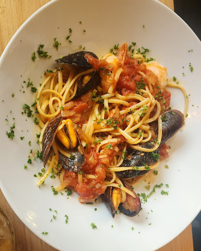 We also ordered the salmon which was cooked in a very generic way with a scoop of veg on the side... nothing much different than you'd get at a mom and pop diner. (A solid 3 stars but for the competitive market in PEC we expected more.) And sadly my partner said one of the side potatoes (just one of them) tasted rotten or mouldy and he had to spit it out.