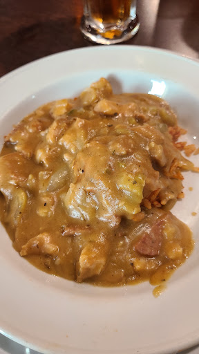 Read moreTried the voodoo chicken. It was ok. Bbq sauce is heavy on vinegar, I wish I asked for another sauce. It was supposed to come with coleslaw but mine didnt. After I asked the waitress why, only then she told me that they ran out. I asked if I can get any other salad instead, she said there is nothing else and that she gave me extra fries anyway (didnt look like I had extra fries but whatever). On the menu voodoo chicken comes with plume or bbq sauce. I got the bbq sauce but was surprised that I was charged an extra $2 for it when I got the bill. I assume when something is described in the menu it should be included in the price. Had to ask twice for a glass for my beer. Water glasses are stained, looks like marks that water leaves when it dries. Probably clean but looks awful. Lowest tip % on the machine is 15%.
