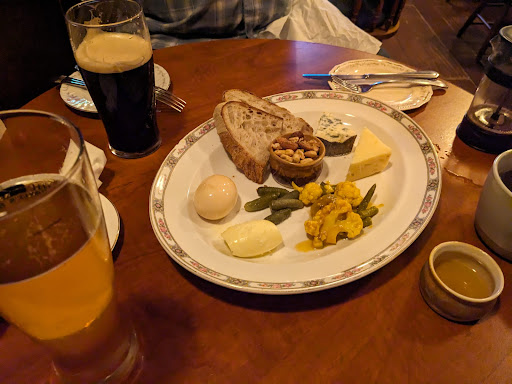 Read moreSo this is a hidden gem IMO. Found it by accident when the tapas place we were going to go was closing the kitchen for the night. My wife and I went to the Hog after going to Rama. This place has everything I want in a pub. Small, dark, live music and great food. There was a great band, bagpipes, guitar and banjo playing celtic tunes. Obviously we decided to stay and sat in the eclectic little pub. There were some issues with the drinks, my wife wanted a White Russian, but they didn't have any coffee liqueur. She opted for a more UK friendly gin and tonic. I had one of the craft beers made for them by Quayles Brewery. We ordered food, the Ploughmans Platter... hearty fieldworkers lunch - cheeses, meats pickles and one of the best breads I have ever had. We also has scotch eggs, which were 100% perfect. Also, Brussel sprouts cooked in the modern fashion, crispy baked (?) seasoned very nicely. I will 100% return, with my guy friends. Beer, live music, great small plate food. I look forward to trying the other dinner options, I suspect the sausage and mash will be amazing. The value was decent by modern standards. Good enough that I have already told...