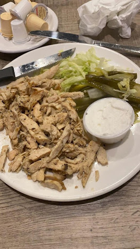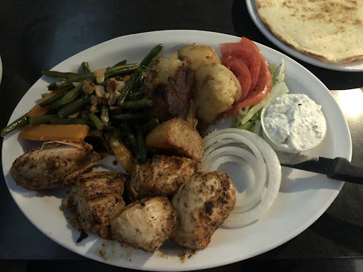 The chicken came not on a kebab but several very large pieces with good spices!! So much food - definitely an extra meal worth! Only comes with one pita bread though so you can make a nice sandwich but might be nice to get a couple.
