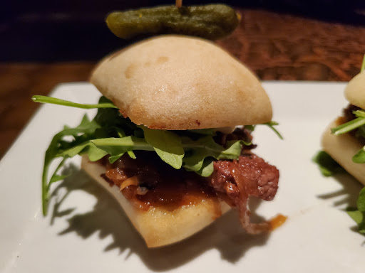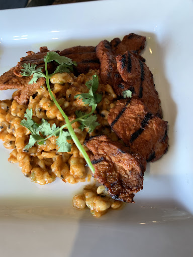 Next, the Shrimp & Pork Lettuce Wraps, described as; including charred corn, pickled onions, cilantro and piquillo pepper salsa wrapped in Boston bibb lettuce. All together, these âwrapsâ were absolutely delicious. BUT, they were not wrapped (as one may expect spring or cabbage rolls to be wrapped) but open, which meant that the lettuce became salsa-saturated, limp, and incapable of holding anything ⌠even with two hands. The finger-dipping bowl hardly satisfied the continual need. I suggest putting this on a children's menu. I tried the Mount Fishtail wine from New Zealand here, correctly described with âlush tropical fruits ⌠and a touch of sweetness. I finished with a wonderful, fruity (expensive) Map Maker wine, also from New Zealand, making New Zealand the go-to country for Sauvignon Blanc wine ⌠at the moment.