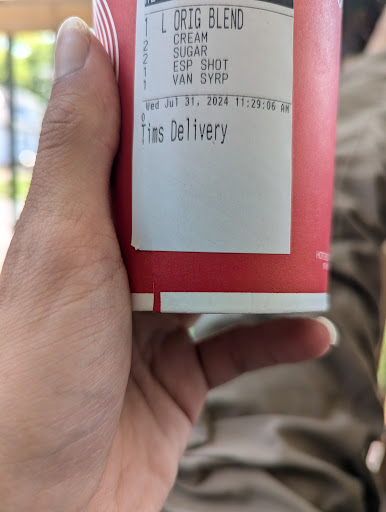 Ordered for delivery (car is broken)... ordered 2 LG soups, 1 LG iced capp, 1 Med iced capp, sausage farmers wrap, and bacon farmers wrap. Out of that the only thing that was right was the soup, the medium iced capp, and the bacon farmers wrap. In the spot of all the missing stuff we got a LG iced coffee, a second bacon farmers wrap BUT... they didn't even put egg on it and literally half a piece of bacon! The receipt says exactly what I ordered, are we not teaching people how to read? Called Tim's and they said if we get there they will fix it... well if I could get there don't you think I would have drove there and got the original order myself? Literally spent $40 for everything and only got maybe...