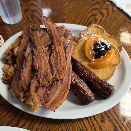 Ā Ā Ā Read moreFirst time here by a recommendation from someone that visited our yard sale,. We got there around 8:30 and just beat the Sunday rush, we were seated right away and given a few minutes to look over the menu. We decided on the breakfast for 2 as it works out to be more food than other restaurants for the same price. When it arrived it was a platter of delicious food that we customized to our liking. Our eggs came out each the way we wanted it on our own plates and then we could pick from the platter of what we wanted. You get all the meats or a bunch of 1 meat etc, the sausages are awesome and tasty and the bacon was nice and crispy ( as we asked for). You get so much food we took some home. I like the fact that you get a traditional breakfast with pancakes or French toast or both and your choice of toast and seasoned potatoes. We will definitely be going back there again for another breakfast. Sorry no photos, I dove right in and the thought of pictures was an after thought.