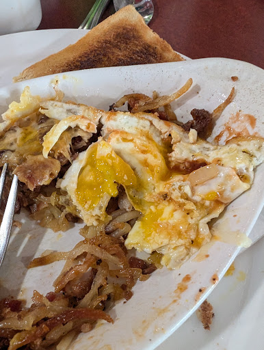 Read moreChose this spot based on several reviews from friends that it was a great breakie joint. I couldn't agree more. From the moment I seated myself, (which btw is so nice, I can tell if a table is clean and free to sit in, can't stand waiting in line to have someone lead me to a spot that I likely wouldn't have chosen myself, but I digress) Voula herself served me a coffee within 1 minute (*) and brought me a Toronto SUN to look through while I waited for my buddy. I truly loved that! How did she know that I loved reading an actual paper? Was it my grey hair, likely. Anyway, for a Wednesday at 845am, the place was 80% full, and folks looked like they were enjoying their coffee and meals. I ordered a steak and eggs with the home fries and rye toast and my bud ordered a ham and cheese omelet which he loved. My steak was tender and perfectly cooked medium while my eggs were also a perfect medium over easy. This short order chef knows their stuff! All for a great price as well. Do yourself a favour and stop by what is becoming a east London...